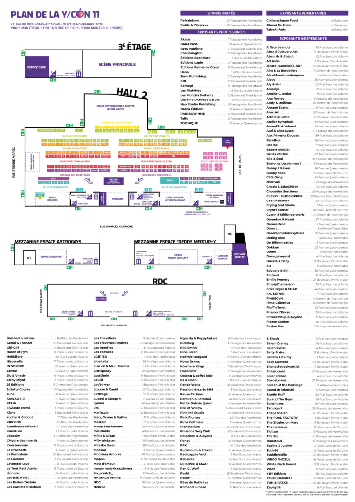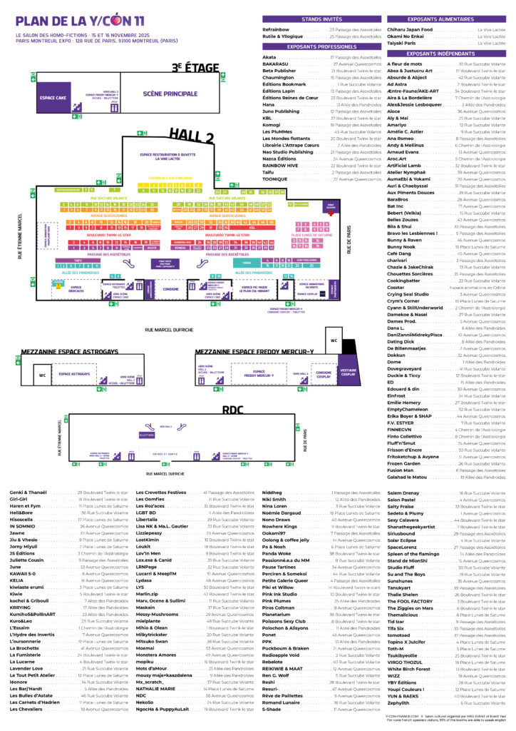 Prepare your visit to Y/CON 11 by discovering the floor plan, the names of the aisles and the location of each exhibitor, whether professional or independent! You’ll also find the programme and game areas available throughout the convention.